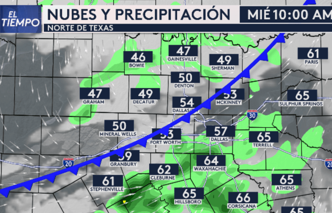 Este miércoles las temperaturas estarán descendiendo durante el día y el viento estará aumentando en horas de la tarde. Esto es lo que podemos esperar en las próximas horas en el norte de Texas.