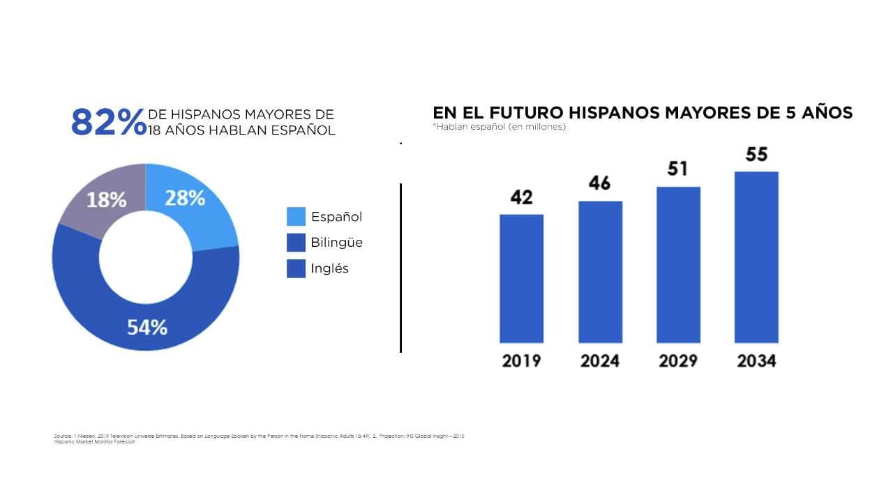 Otro dato significativo es que el 82% de los hispanos mayores de 18 años hablan español. El estudio además predice que los hispanos mayores de cinco años