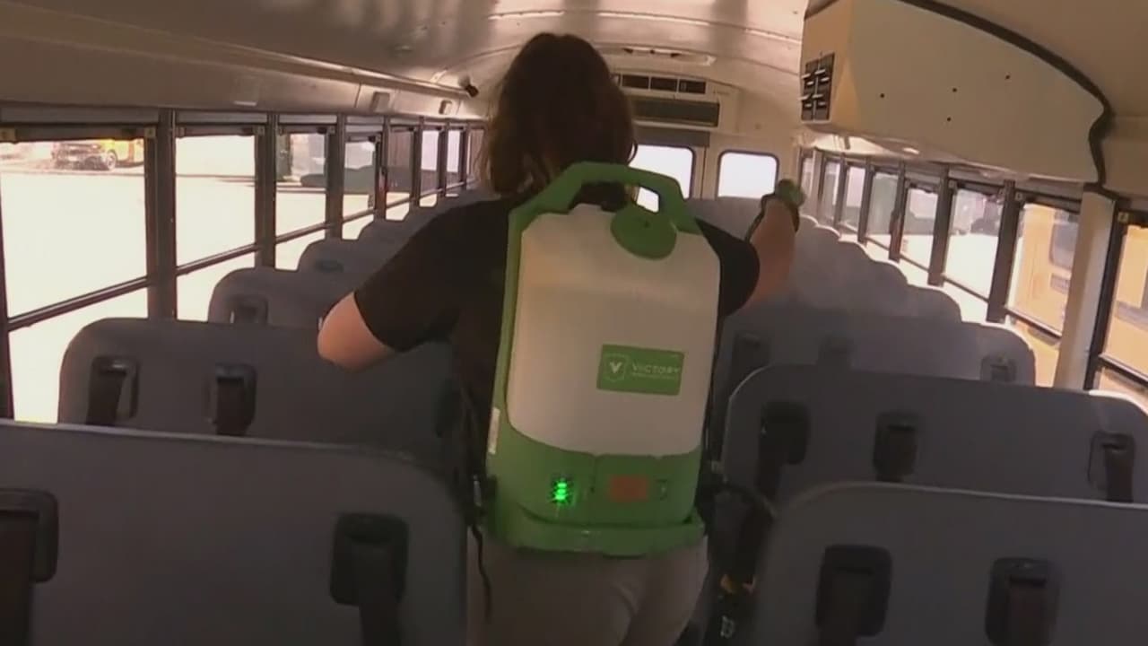 Realizan limpieza en autobuses del Distrito Escolar de Dallas para prevenir contagios por el coronavirus