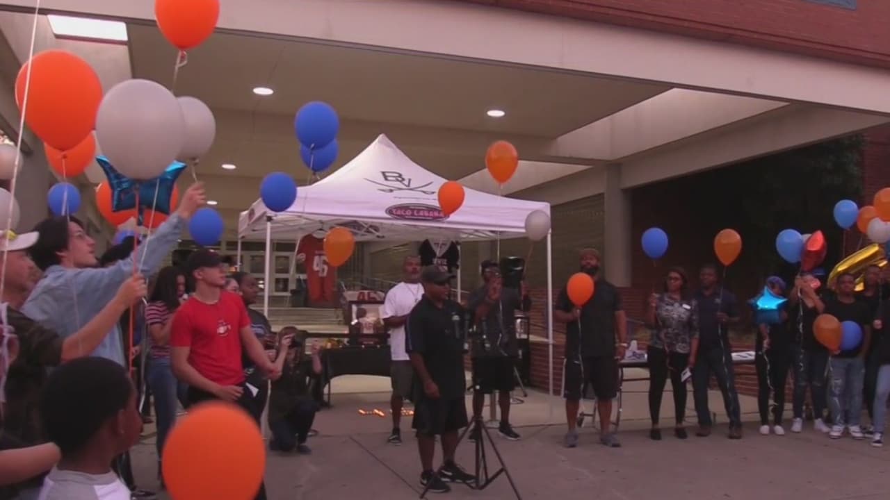 Más de 100 jóvenes de la preparatoria Bowie lanzaron globos al cielo en honor al joven de 17 años que fue ultimado a balazos el pasado jueves. Los entrenadores de Strathe, quien era un reconocido atleta y estrella del equipo estudiantil de fútbol americano, recordaron su liderazgo y su dedicación al deporte.