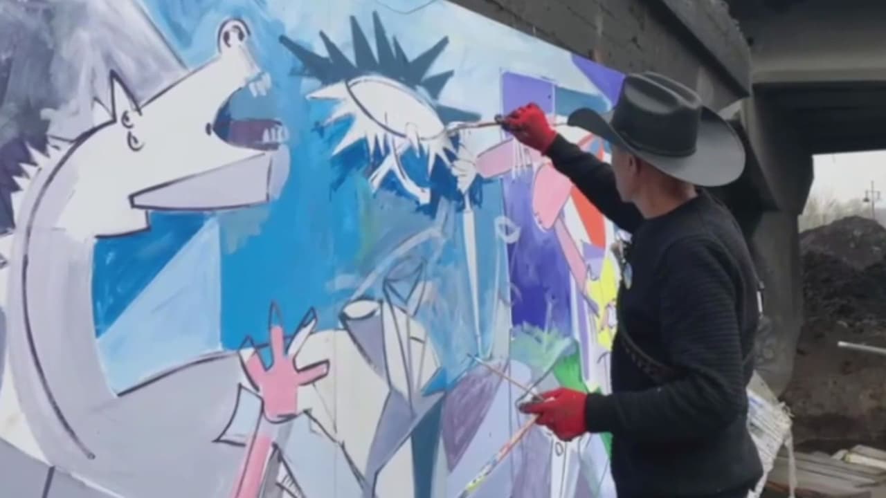 El pintor Roberto Márquez hizo mural en icónico puente destruido de Ucrania