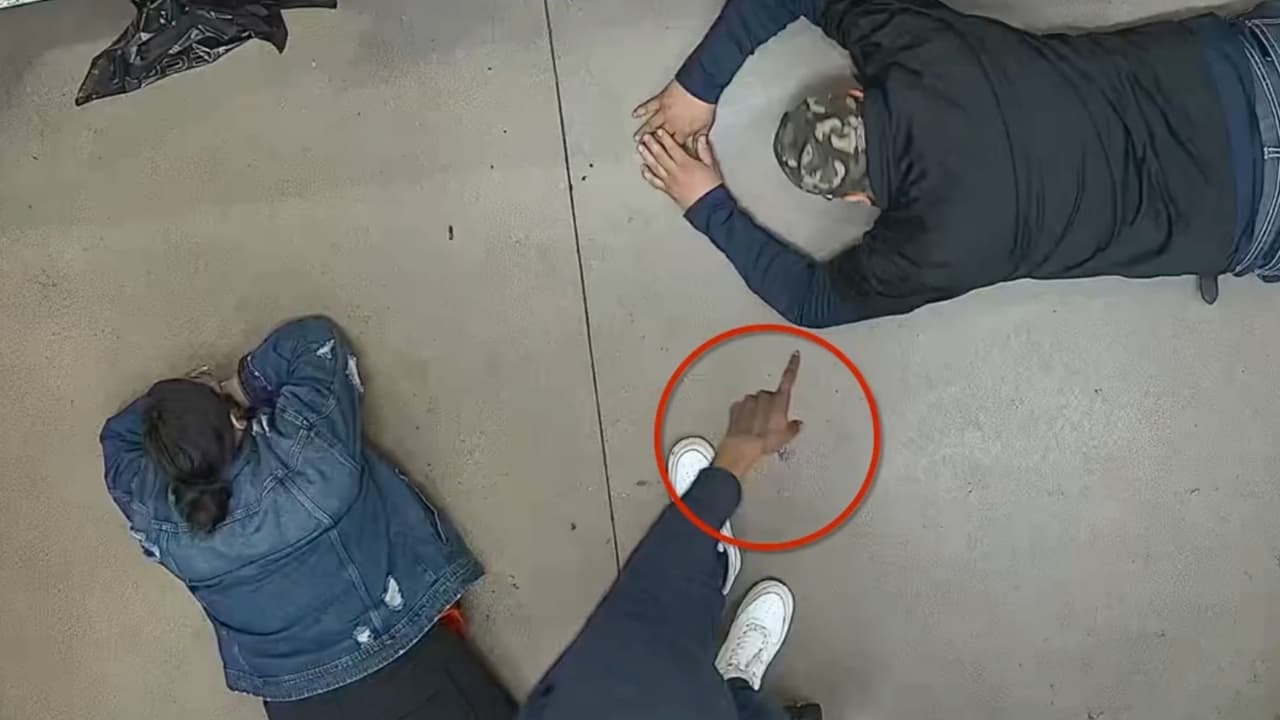 El atraco quedó captado en las cámaras de seguridad y se observa que tres sospechosos cubiertos de sus caras entran y van por los empleados para amenazarlos.