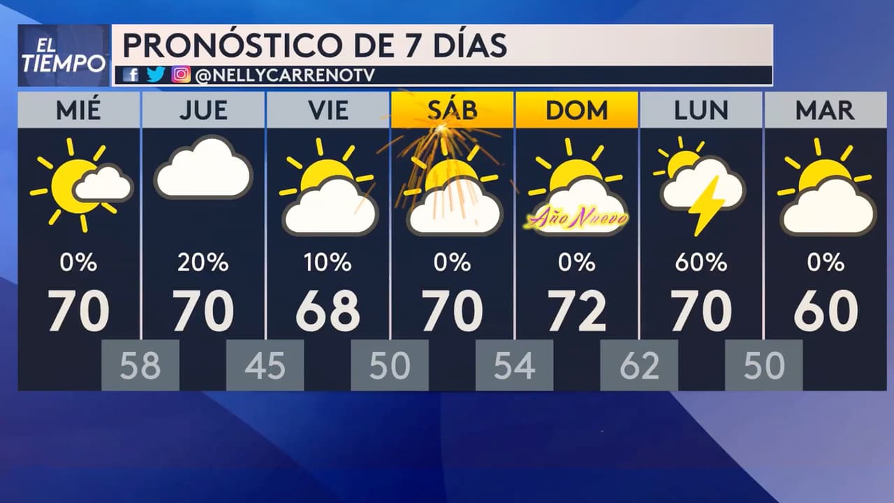 Hoy nos espera un miércoles soleado, con temperaturas máximas alrededor de los 68 grados, ideal para hacer actividades al aire libre y disfrutar mucho después del frío, nuestra meteoróloga Nelly Carreño nos presenta el pronóstico y las buenas noticias.