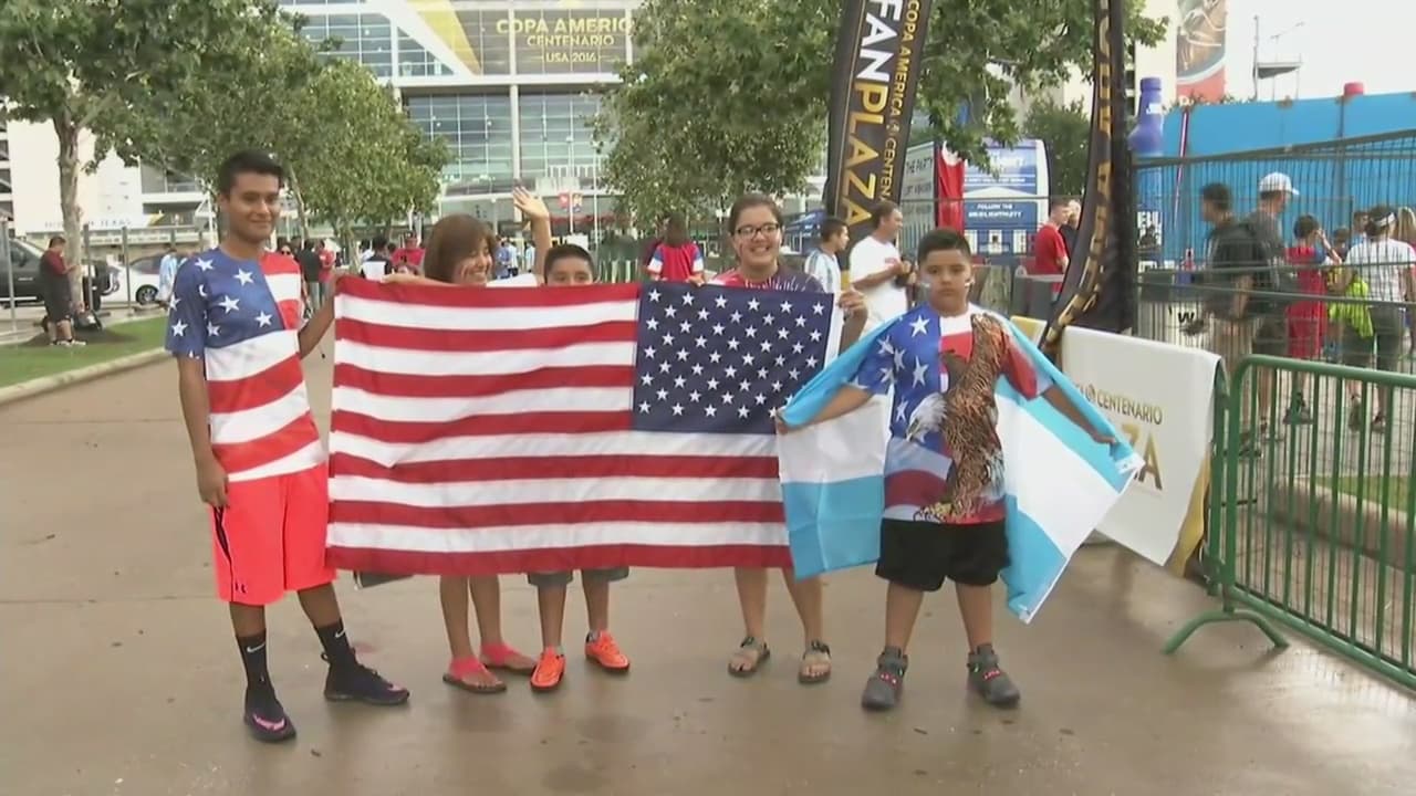 Los fanáticos de Argentina y EEUU se dieron cita frente al NRG Stadium para apoyar a sus equipos en un partido que causa gran expectativa.