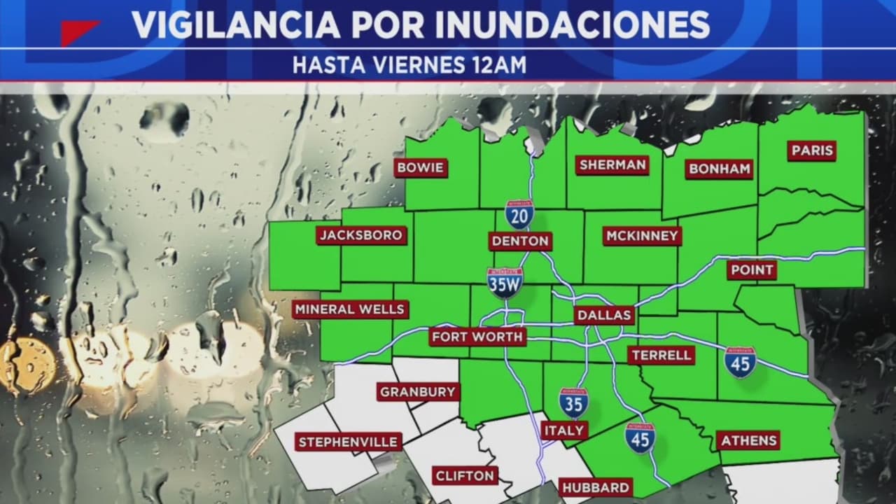 Según el pronóstico, la temperatura oscilará entre los 80 y los 68 grados Fahrenheit para el resto de la jornada. El servicio meteorológico de Fort Worth ha extendido la vigilancia por inundaciones repentinas hasta el viernes y recomienda a la comunidad no conducir en zonas con acumulación de agua.