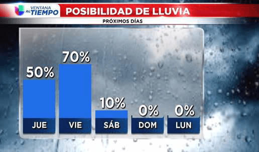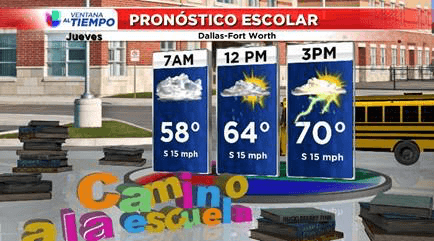 El jueves vamos a comenzar el día con temperaturas en los 50 grados, nublado con llovizna dispersa. En la tarde tendremos aguaceros aislados, pero la mayor parte de la actividad de lluvias será hacia el este del Metroplex. En DFW hasta podríamos ver un poco de sol entre las nubes en la tarde. ¡Las temperaturas máximas llegarán cerca de los 70 grados!