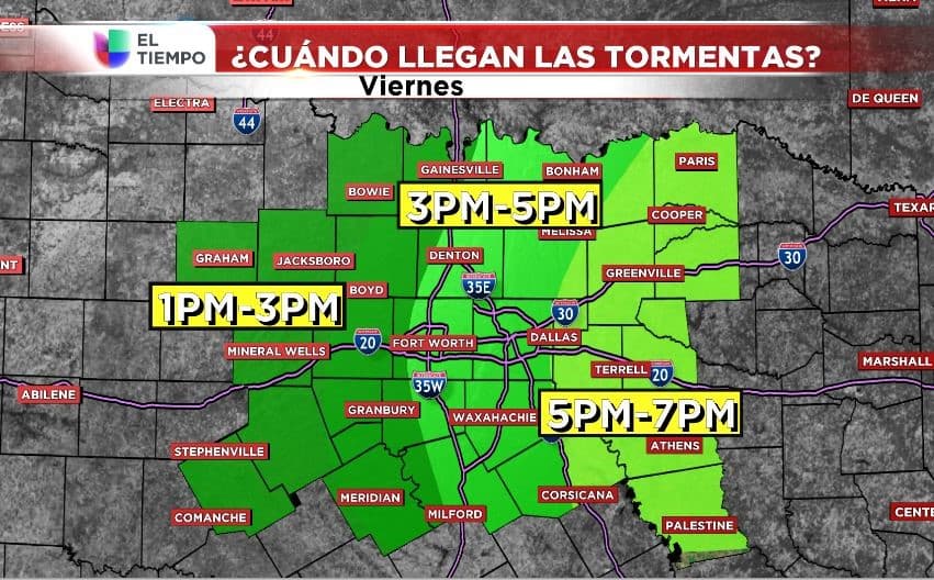 Entre 3pm al oeste del Metroplex hasta la media noche en el este de nuestra área.