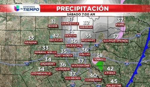 ¡En los próximos días veremos temperaturas en los 70 grados, un poco de sol, llovizna, aguaceros, fuertes tormentas y finalmente, frío! Ciudades en el norte de Texas cerca de la frontera con Oklahoma hasta podrían ver algunos copos de nieve.