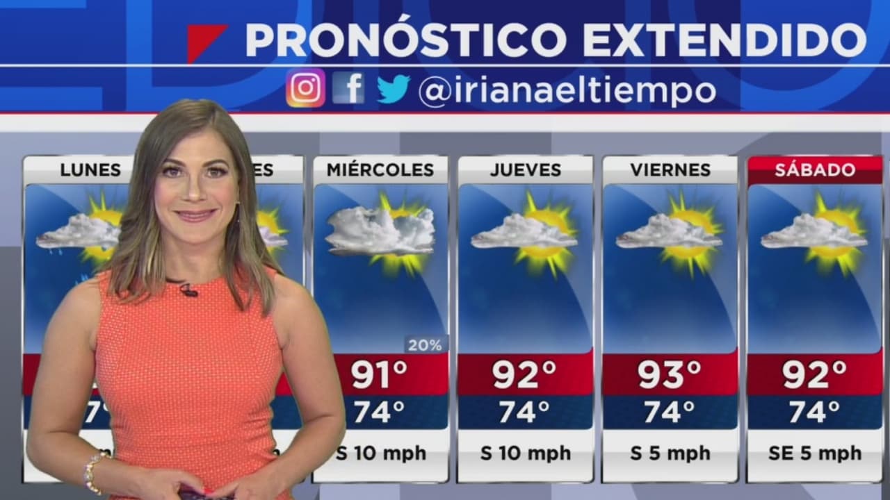 Según el pronóstico, hay un 30% de probabilidades de lluvias que podrían extenderse hasta el martes. Se espera que la temperatura máxima alcance los 88 grados Fahrenheit manteniéndose por debajo de lo normal para esta época del año.