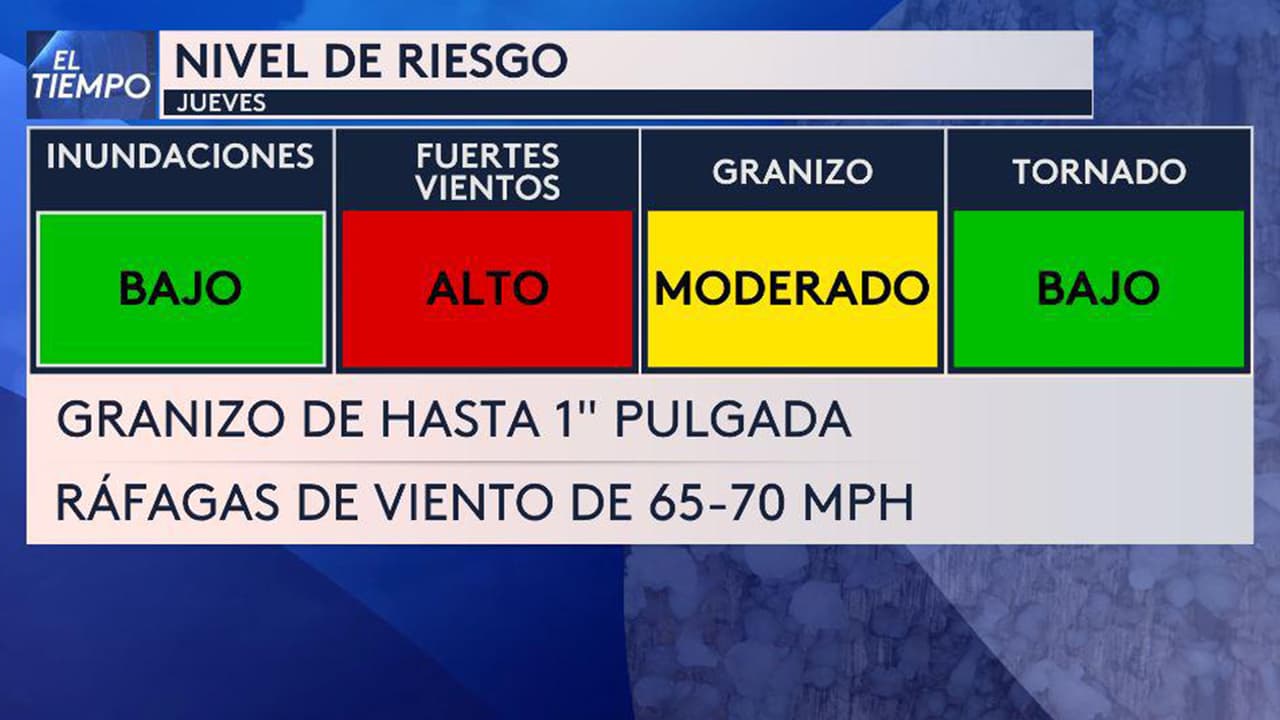El Metroplex está en riesgo 2 o bajo de Tiempo Severo para este jueves 16 de marzo por el paso de un sistema de tormentas que podría traer lluvias y vientos fuertes, además no se descarta la posibilida de granizo.