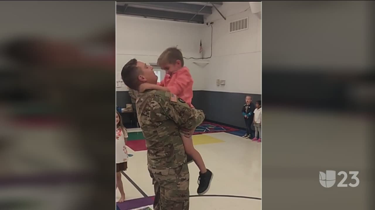 Soldado sorprende a su hijo en clases y otras tendencias en la red