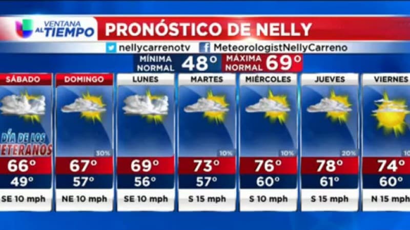 Este sábado las temperaturas máximas serán cercanas de los 66 y 67 grados. El domingo, gran parte del día permanecerá nublado con algo llovizna durante la tarde.