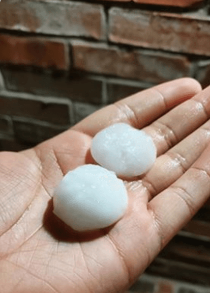Foto de granizo en la ciudad de Bryson, condado Jack. granizo grande, de alrededor 2 pulgadas de diámetro.