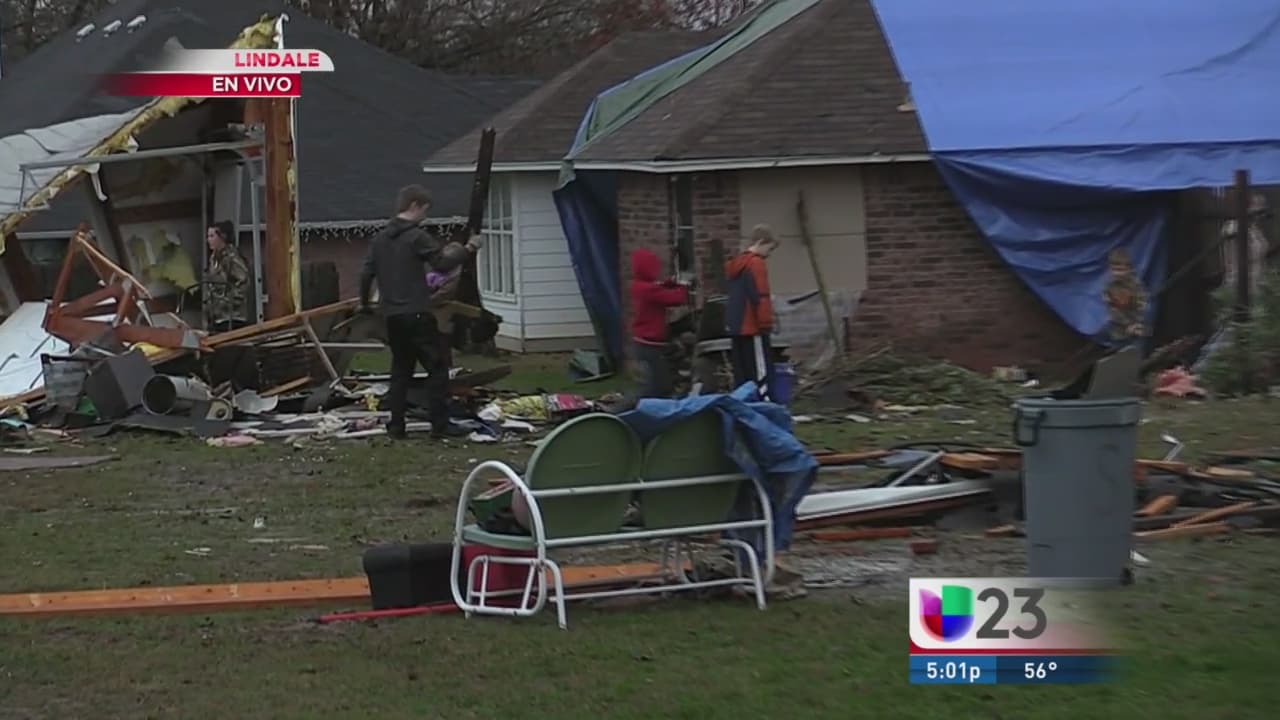 Lo que podría haber sido un tornado impactó el área de Lindale dejando a cientos sin casa.