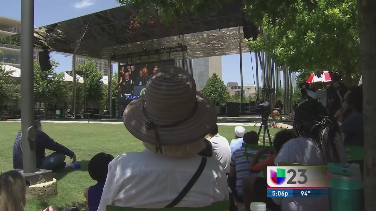 Decenas de familias vieron el tributo que les brindaron a los oficiales caídos en cumplimiento de su deber en el Klyde Warren Park.