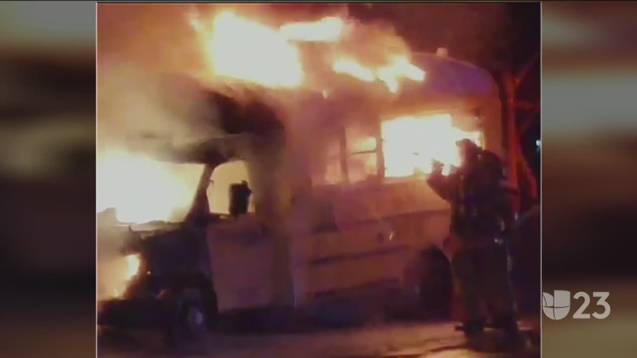 El autobús iba hacia una escuela primaria cuando el conductor se dio cuenta que salía humo del motor, por lo que rápidamente evacuó el vehículo con todos los estudiantes a bordo.