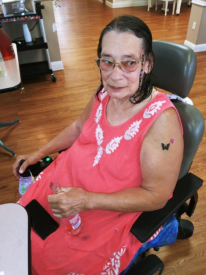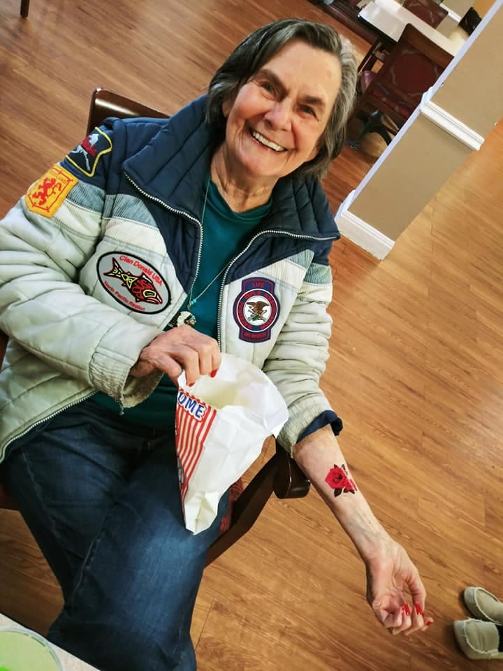 Empleados del hogar de ancianos Wesley House Assisted Living, en Hillsboro, Texas, llevaron bebidas y les pusieron tatuajes temporales a los residentes del lugar para darles un día de alegría en medio de la incertidumbre por el coronavirus.