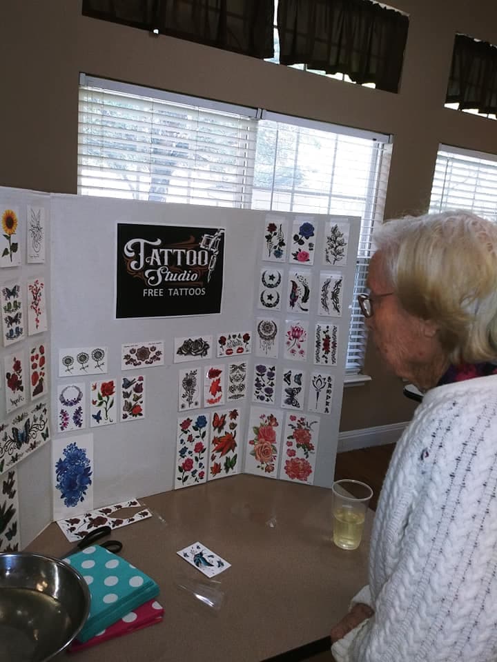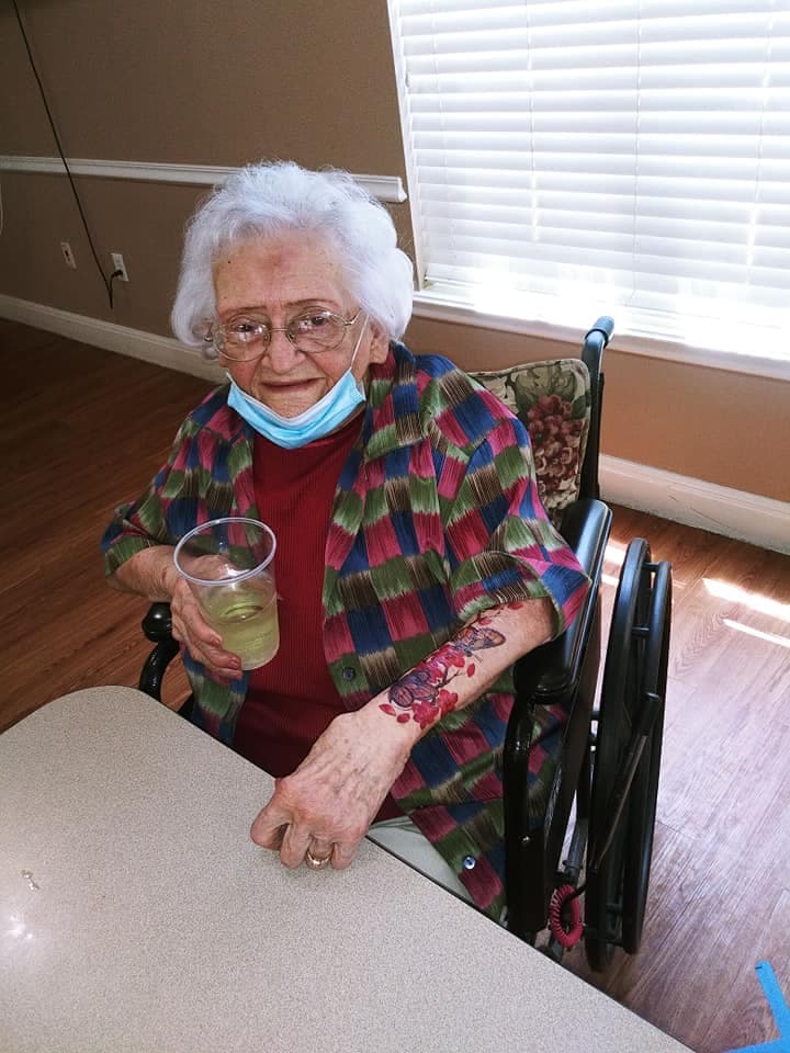 HILLSBORO, Texas. - Los residentes del hogar de ancianos Wesley House Assisted Living en Hillsboro, Texas, se llevaron una grata sorpresa por parte de los empleados del lugar, quienes decidieron hacer una fiesta “happy hour” con bebidas y tatuajes.