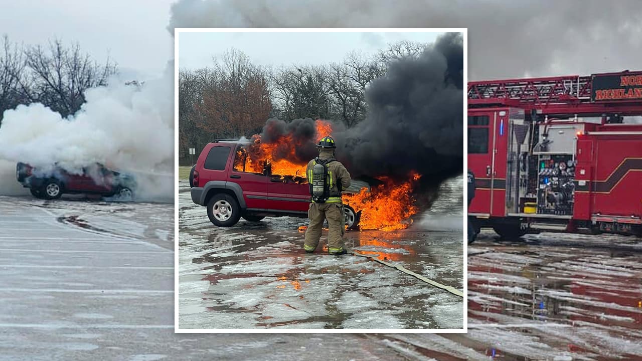 Un auto se incendia haciendo piruetas en el hielo en el norte de Texas