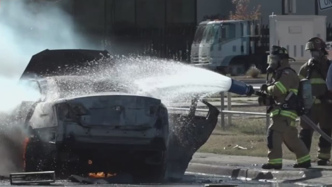 Un conductor herido deja el incendio de un vehículo en Hurst, Texas