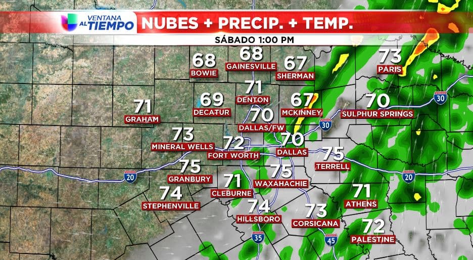 El peligro será el granizo y los fuertes vientos. En la tarde este sistema tendrá todavía más inestabilidad y la capacidad de producir un tornado en Dallas y zonas hacia el este. Algunas de las ciudades con el riesgo más elevado de ver un tornado son Dallas, Terrell, Canton, Sulphur Springs, Palestine y Paris.