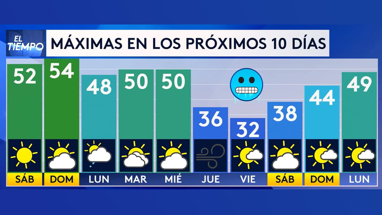 En navidad para Dallas y Fort Worth tendremos temperaturas muy frías, pues se espera una helada que baje el termómetro hasta los 32 grados como máxima para el viernes 23 de diciembre y con máximas de 38 para la noche buena, es decir el 24 de diciembre.