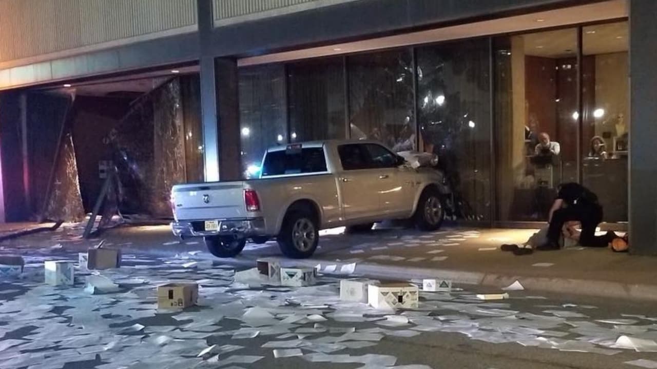 Video En video: Estrellan una camioneta contra una estación de TV en Dallas