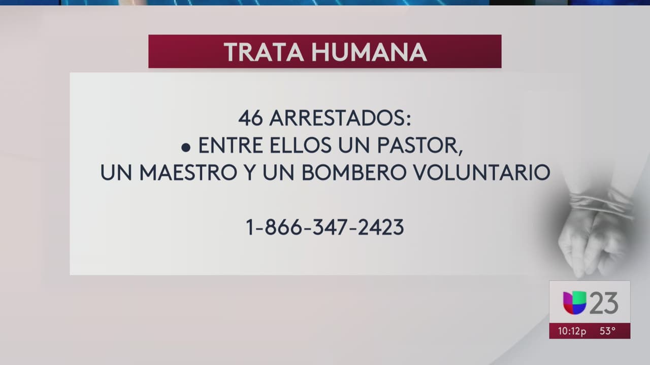 El Departamento de Seguridad Interna de Dallas confirmó el arresto de 46 personas por trata humana en el norte de Texas, entre los arrestados está un pastor, un maestro y un bombero.