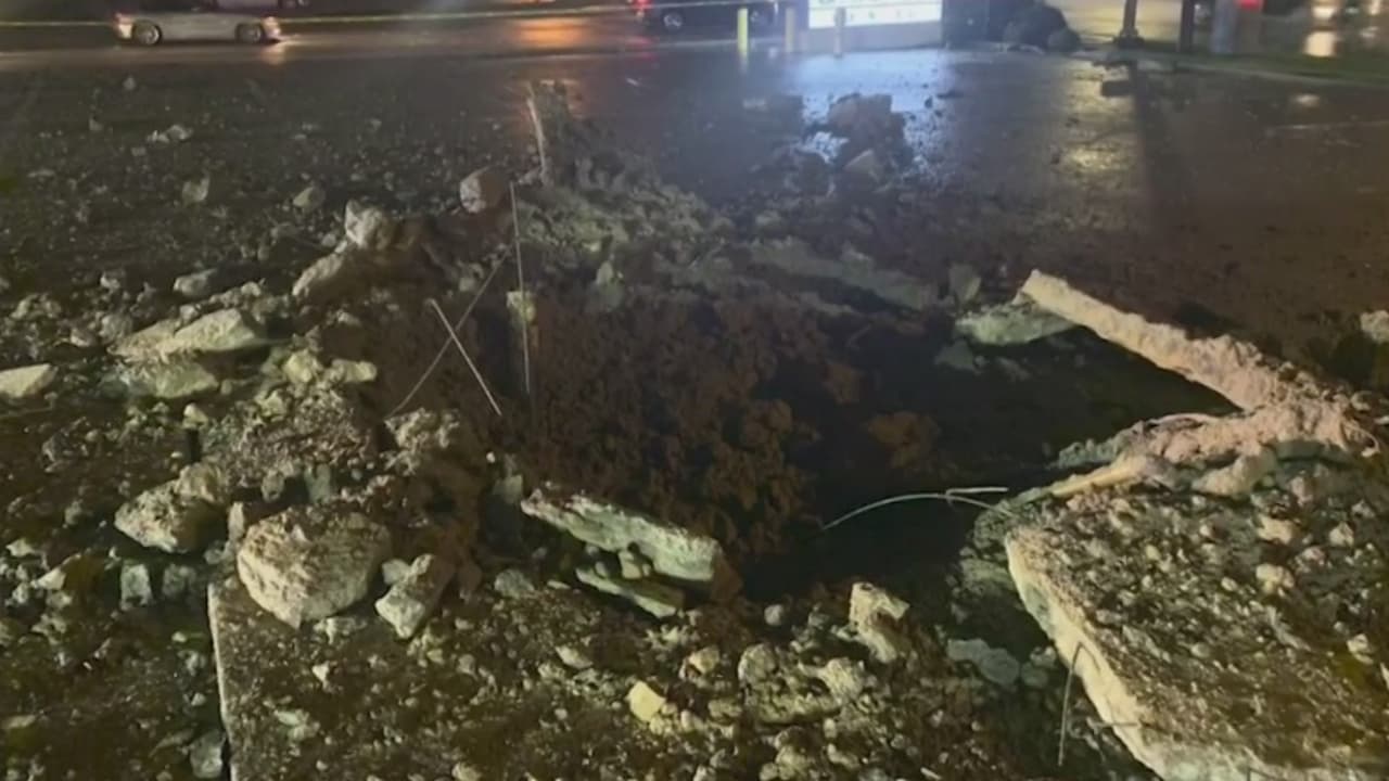 Un rayo toca tierra y deja un gigantesco agujero cerca a una gasolinera en Fort Worth