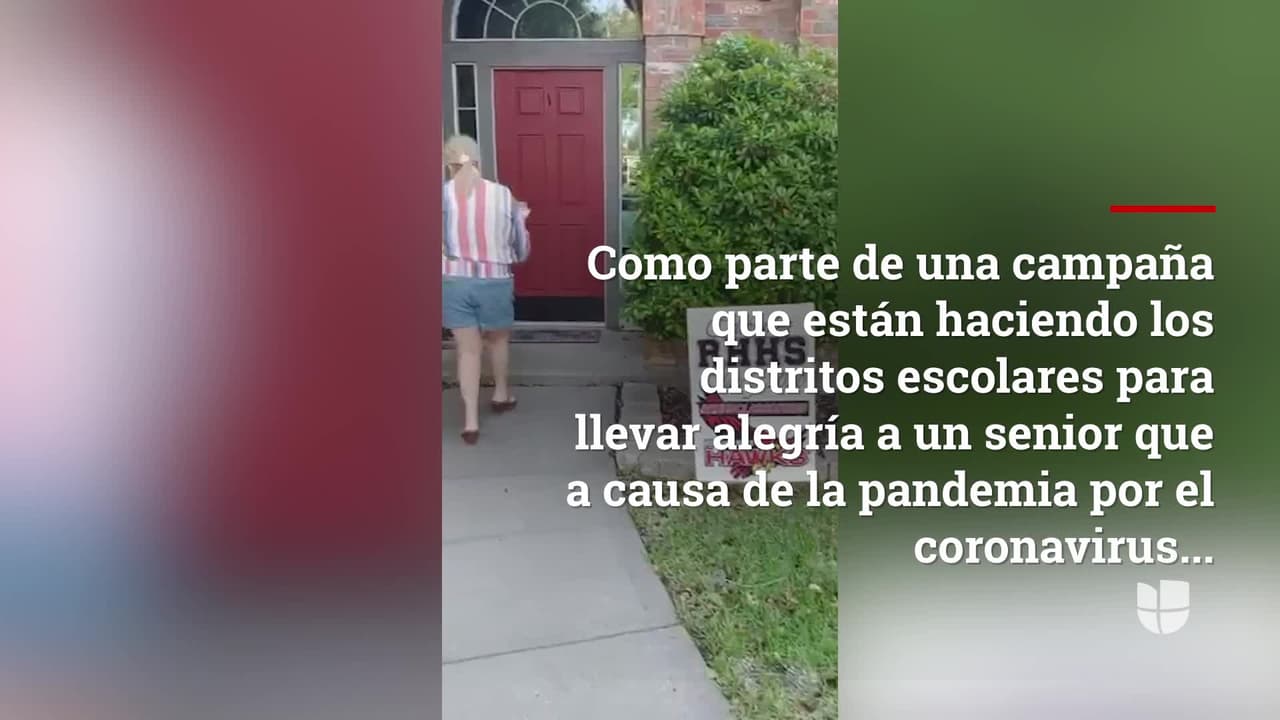 Como parte de una campaña que están haciendo los distritos escolares para llevar alegría a un senior que a causa de la pandemia por el coronavirus no podrán tener una graduación, una familia hispana llevó una canasta con regalos para celebrar a esta estudiante.