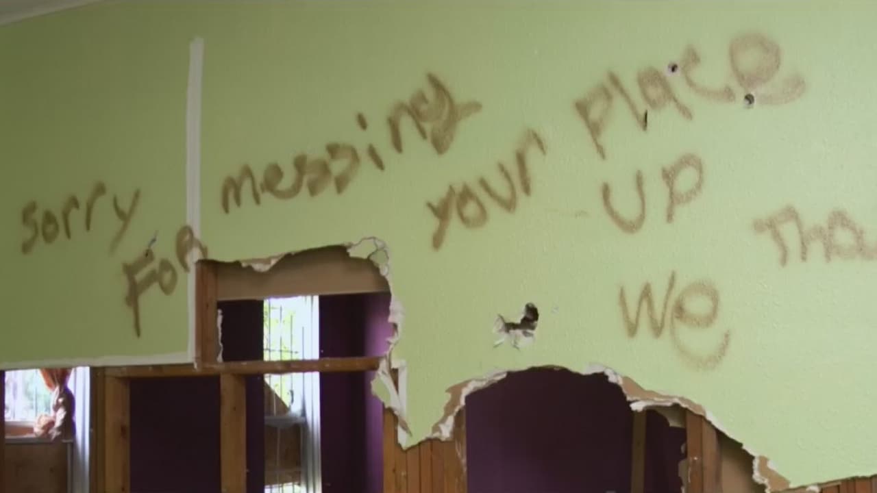 La casa de María Berta Rangel ha sido asaltada y destruida tres veces este año por vándalos que rompen los muebles y que escriben mensajes ofensivos en las paredes. La mujer asegura que necesita vender la propiedad para pagar los trámites migratorios de su esposo y algunas deudas. Sin embargo, no ha podido hacerlo por los terribles daños en la vivienda.