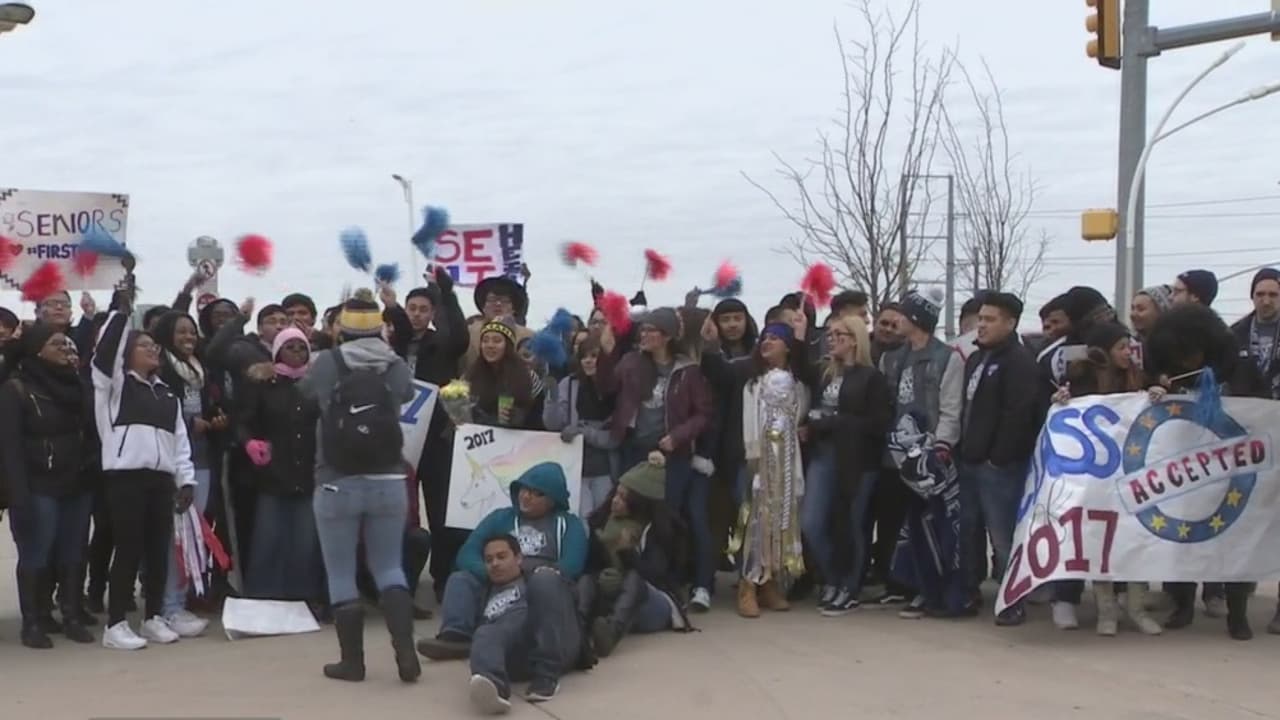Unos 500 estudiantes de las siete escuelas Charter Uplift marcharon por solicitudes de ingreso