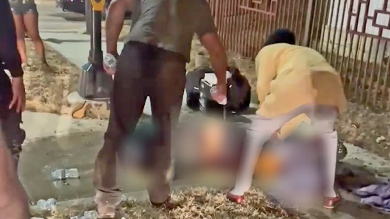 En la grabación, se puede observar que el hombre en llamas aún parece vivo porque se mueve y los esfuerzos de varias personas que intentaban apagarlo rociando agua embotellada sobre su cuerpo para sofocar el fuego y hasta lo cubren con lo que parece ser mantas.