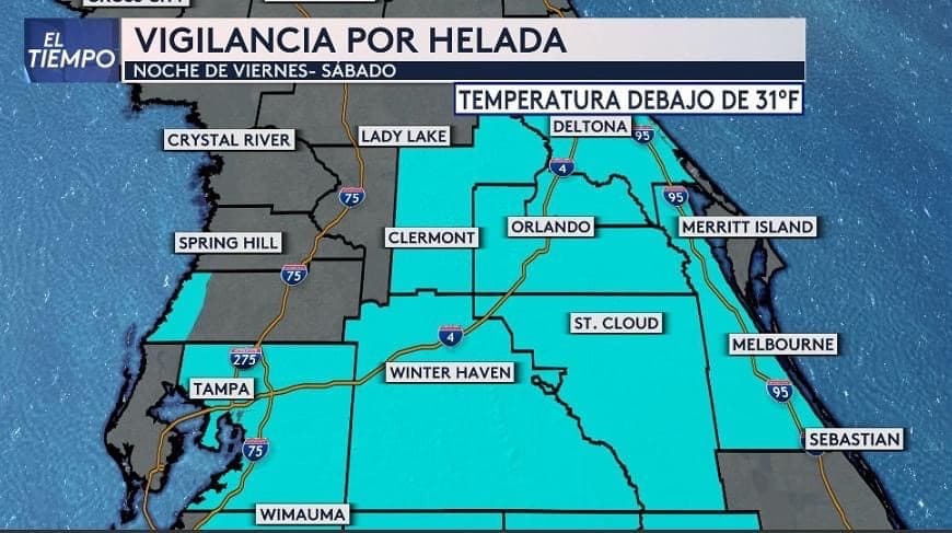Autoridades meteorólogicas han emitido una vigilancia por helada en gran parte de Florida Central para este fin de semana.