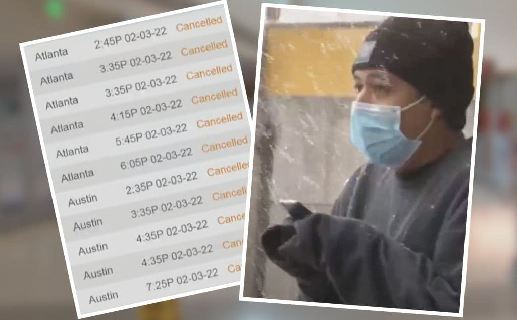 Una pareja tuvo que pagar 600 dólares al quedar varados en el aeropuerto Dallas Love Field, siendo unas de las miles de personas afectadas por la cancelación de vuelos, tras la tormenta invernal en el norte de Texas.