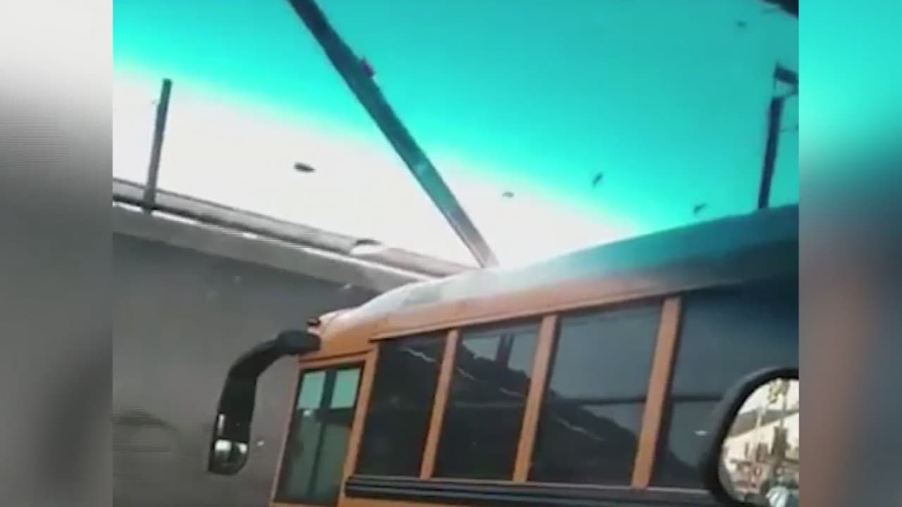 Un video muestra el momento en que el conductor de un autobús escolar apenas alcanza a frenar antes de ser impactado por un tren de carga la mañana de este lunes, reportes indican que ni el chofer ni el alumno abordo resultaron heridos, pero autoridades escolares investigan el caso.