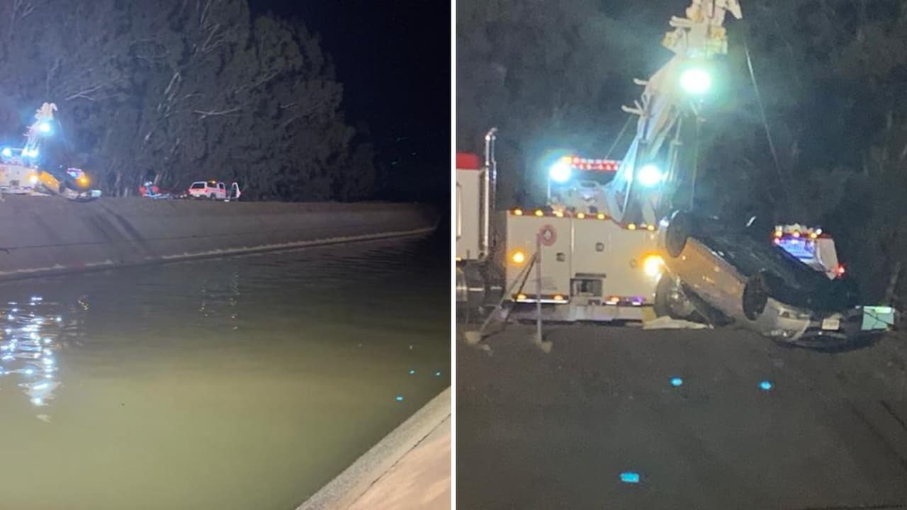 Buen samaritano rescata a conductor presuntamente alcoholizado que chocó y cayó a canal en Clovis