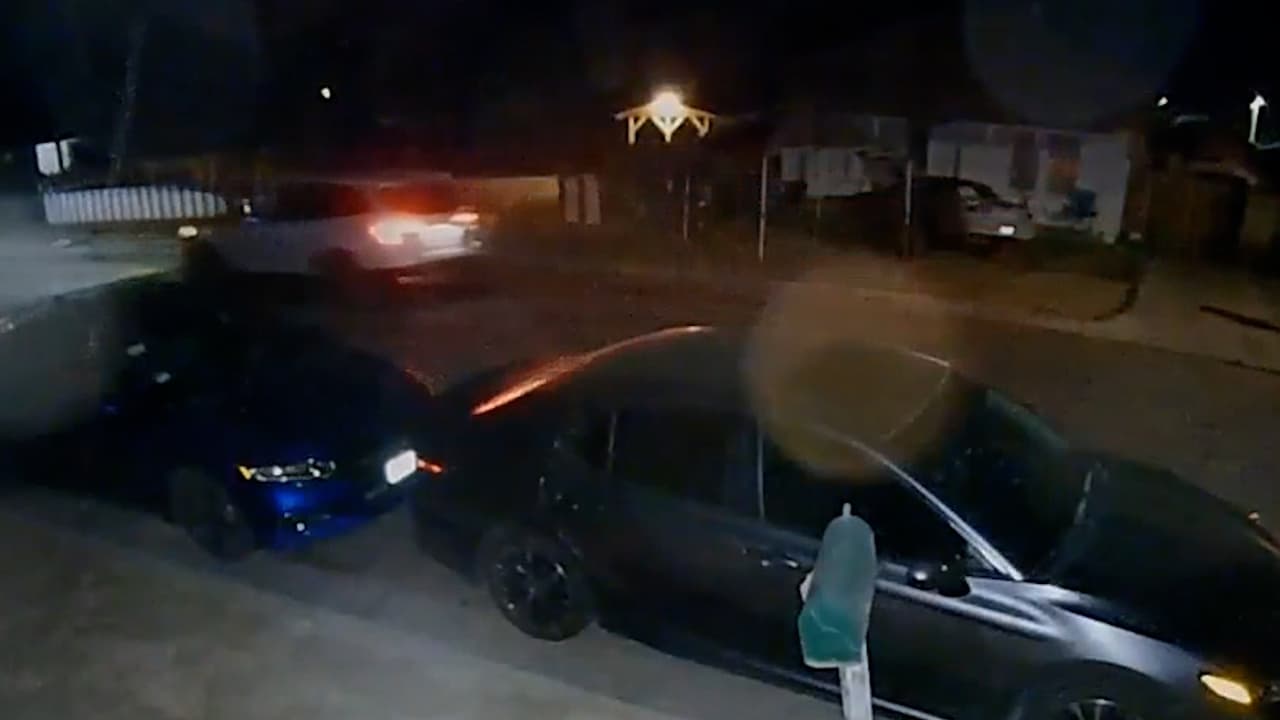 Cámara de seguridad capta a sospechosos en un auto disparando contra una casa en Madera