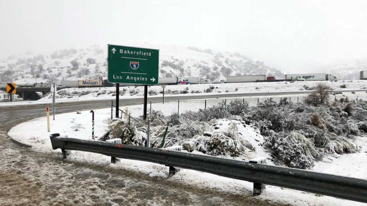 La Patrulla de Caminos de California reportó el cierre de la carretera interestatal 5, que conecta Bakersfield con Los Ángeles, debido a la presencia de nieve y hielo en Grapevine.