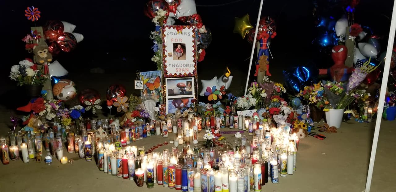 Los detalles de la investigación policial sobre la desaparición y muerte de Thaddeus Sran no dejan de sorprender e impactar a la comunidad de Madera. Por eso en el sector donde fue encontrado el cuerpo incinerado del niño, las velas y globos se multiplican en su memoria.