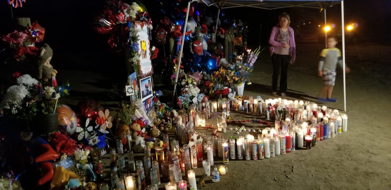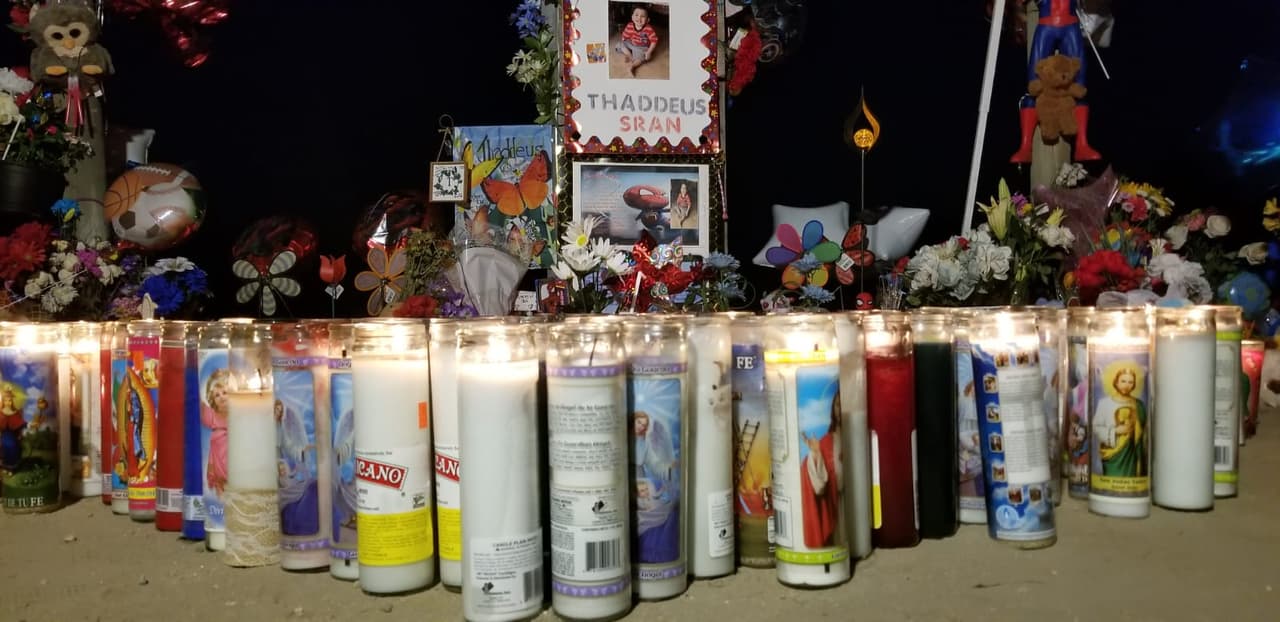 El domingo, cientos de velas fueron encendidas en el campo de almendras del camino 21 con la avenida 14, donde fueron hallados los restos quemados de Thaddeus, de dos años de edad y con necesidades especiales.