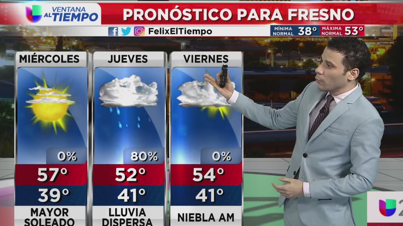 Manténgase alerta porque se mantiene la niebla densa por la mañana, por la tarde se esperan cielos soleados con temperaturas máximas de 57°F y mínimas de 39°F.