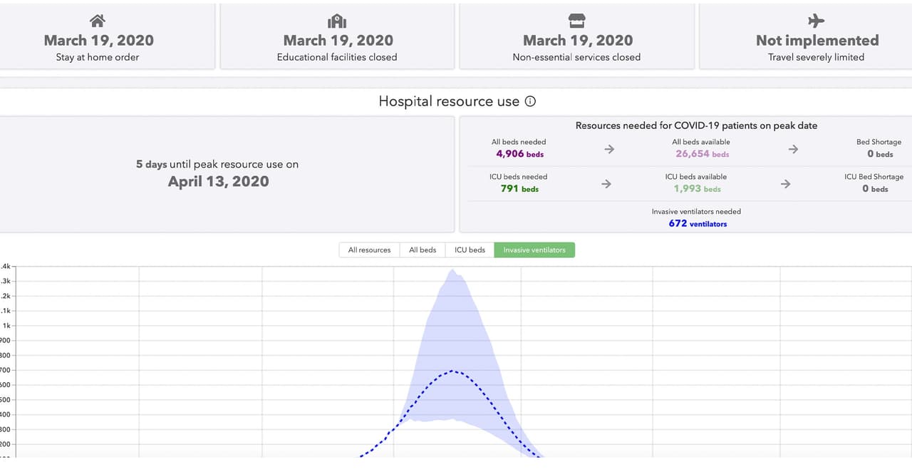 El modelo estadístico del IHME muestra que el estado dorado implementó medidas de distanciamiento social tres días antes que lo hiciera Nueva York. El 19 de marzo el gobernador Gavin Newsom ordenó a los californianos a quedarse en casa, precisamente para frenar la propagación del virus.