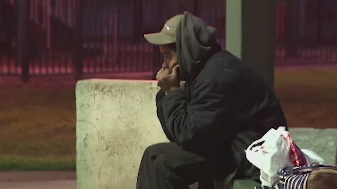 “Aquí es donde vivo yo por ya casi 6 o 7 meses”, dijo Rosendo Hernández, refiriéndose al campamento de indigentes.