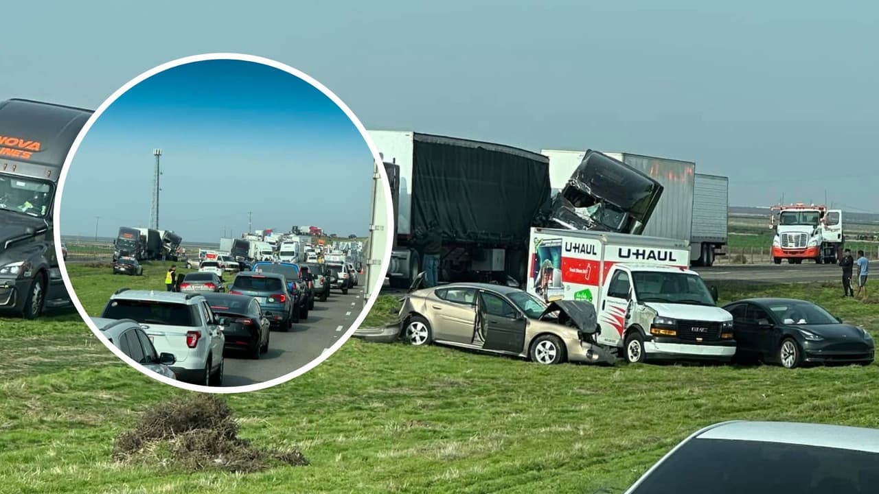 Según la Patrulla de Caminos de California (CHP), la mañana del 6 de enero, 17 vehículos y 18 camiones se vieron involucrados en un accidente entre Millux Road y Old River Road.
