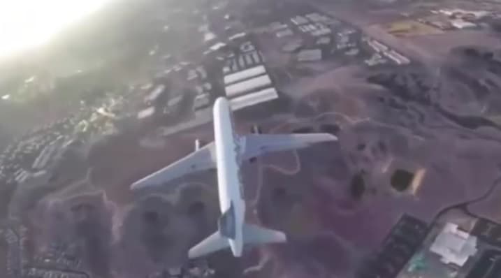 El gobierno federal investiga el video de un dron volando arriba de un avión comercial en Las Vegas.
