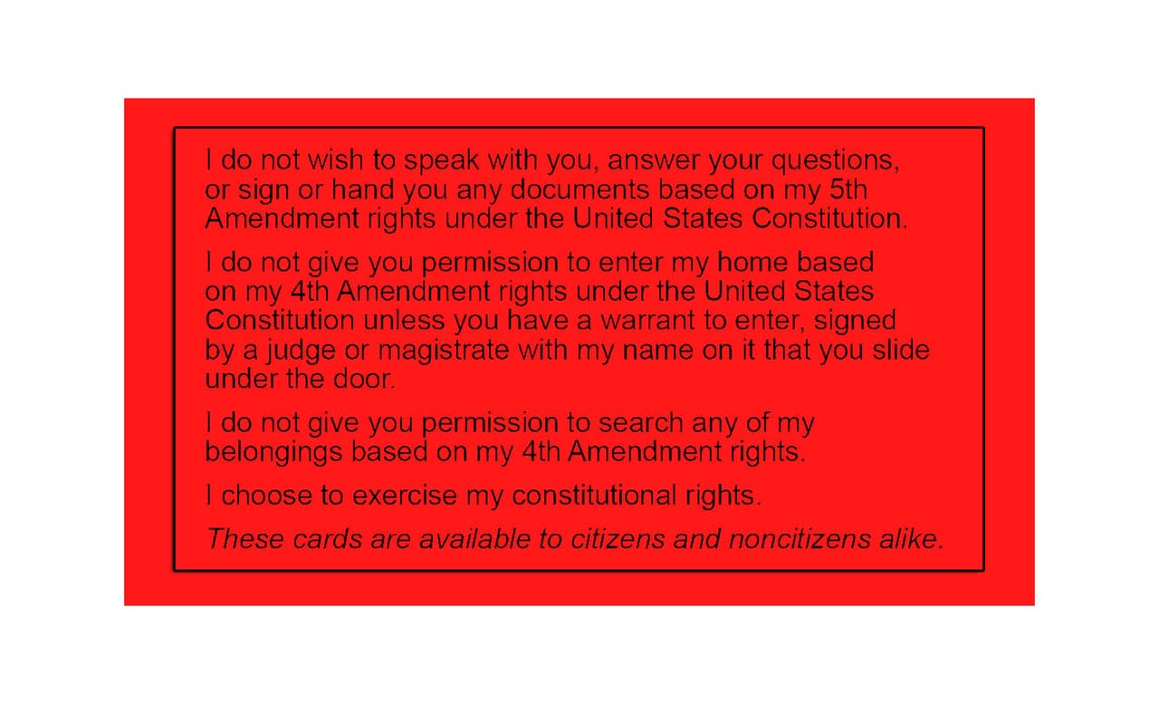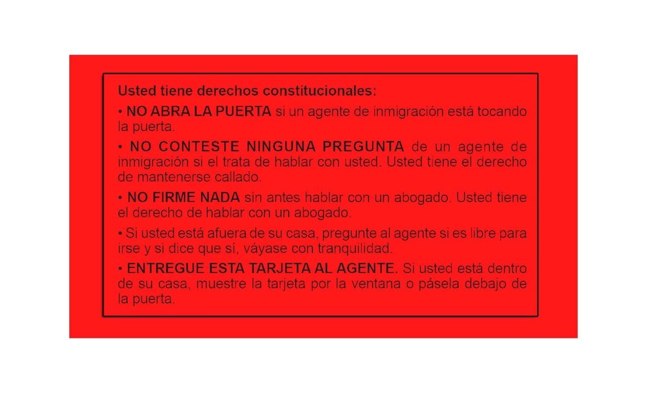 Esta tarjeta roja, creada hace tres años por un grupo de activistas, es una señal para los agentes de ICE. De esta forma, ellos asumen que la persona a detener conoce sus derechos institucionales.