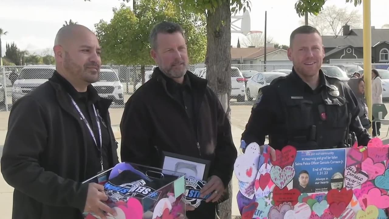 Alumnos del Distrito Escolar Unificado de Selma reconocieron el máximo sacrificio del oficial Gonzalo Carrasco y agradecieron al departamento de policía sus acciones para protegerlos el pasado 31 de enero cuando la escuela fue cerrada temporalmente debido al tiroteo cerca del área.