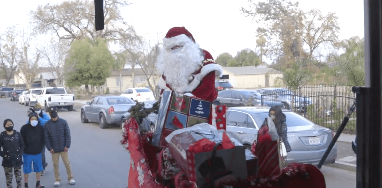 Fresno, CA - Miembros de una familia del Distrito Escolar Unificado de Fresno fueron sorprendidos al recibir la visita de Santa Claus anticipada.
