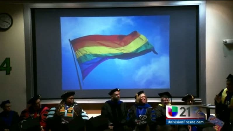 Por primera vez en su historia la universidad Fresno State realizo una ceremonia de graduacion en donde celebra la diversidad de sus estudiantes al realizar una graduacion especial para la comunidad homosexual y transgenero.